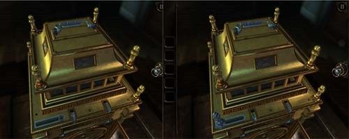 顶部翻开后,将左下角铁块向上推动,小塔出现,通过透视镜进入。