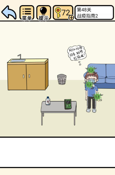 2、点击口罩,把口罩拖到垃圾桶里,点击游戏机
