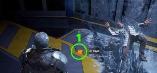 1、第一个线索在扫描冰冻科学家左边地上的笔记本。