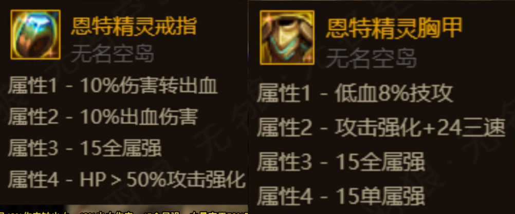 2、恩特精灵胸甲是空血流玩家必备,恩特精灵护腿是出血流最强裤子,恩特精灵圣杯是空血流必备,