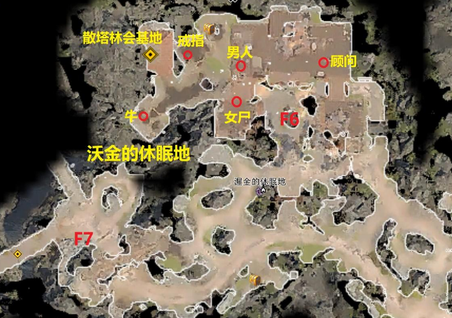 2、到达晋升之路后这个区域分为左右两块,沃金休眠地在这块区域的左半边。