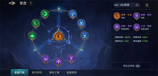 绿色和蓝色星石可以搭配使用,增加英雄的物理攻击能力和穿透能力。