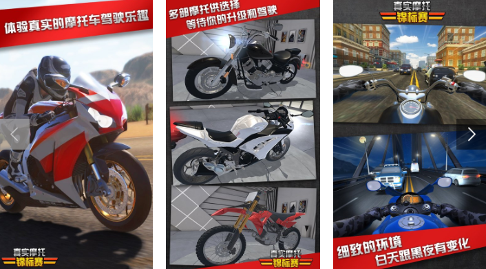 摩托车骑行游戏玩起来紧张刺激,是很多游戏玩家的最爱之一,而这类游戏品质参差不齐,其中较好的是真实摩托锦标赛、摩托来了、3D摩托飞车2、暴走摩托车和真实公路摩托锦标赛。
