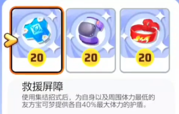 3、同样类型的持有物推荐升到30级的是救援屏障,适用性更广。