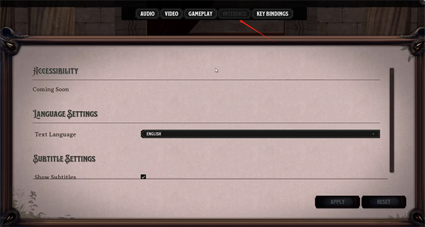 2、然后玩家需要在设置页面里点击上方的INTERFACE选项。