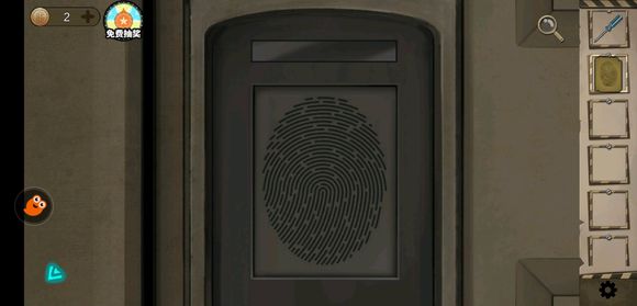 腿骨有什么用呢?还是下楼去问问A先生。下楼把腿骨交给A先生,A先生给了一张红色指纹卡(图1),用之前拿到的胶带在指纹卡粘取指纹(图2),然后就可以用指纹去打开狱长室了。