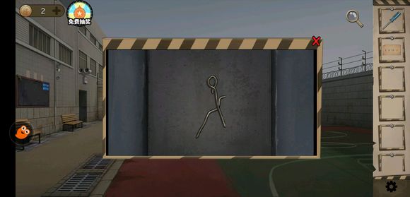 用配制的钥匙打开了牢门,根据A先生的提示到二楼(图1),点击二楼过道牢门下方的栅栏,把三角、方形、五角星和圆形木片分到相应的牢房(图2-图5)。