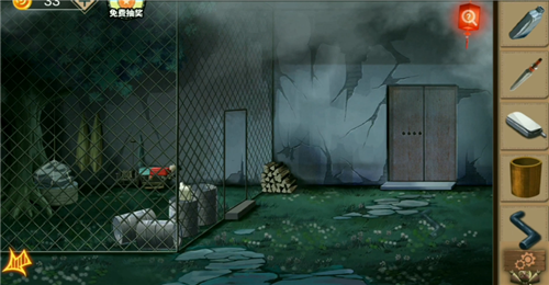 把木牌放在断桥上,就能到另一个场景,获取一个手机,地上有水桶、汽油、齿轮、把手、水管、传送带在石头上,要用匕首划开,然后启动发动机,在水井上获取徽章和火柴