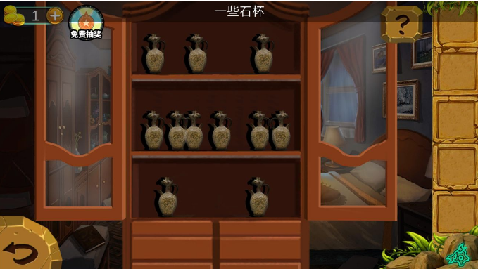 1.点击左侧柜子,看到三层花瓶数每层花瓶个数
