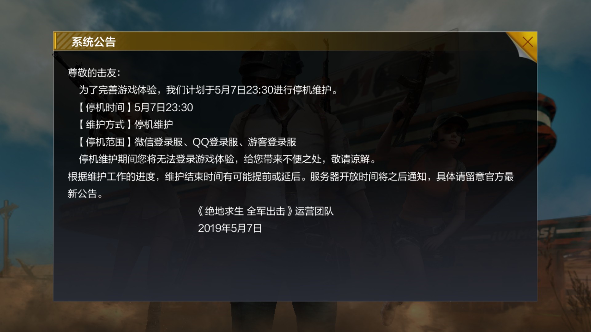 以上就是小编为大家带来的绝地求生全军出击停机维护 恢复时间未知全部内容,更多精彩敬请关注最新下载站!
