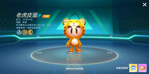 定位:作为繁荣山丘赛车场上的王者,皮蛋渴望老虎一样的迅猛勇敢。