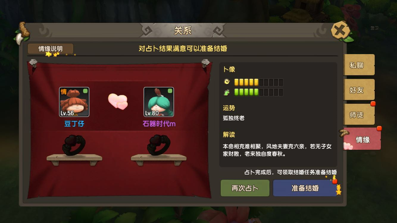 ③强制离婚:只能单人申请,当申请强行离婚后,另一方将不能申请强行离婚,但可以在收到强行离婚的消息后,在第1~3天内拒绝强离,一共有两次拒绝强离的机会;申请强行离婚的一方在第3~10天再次前往玛丽娜斯村找姻缘祭司二次确认离婚。