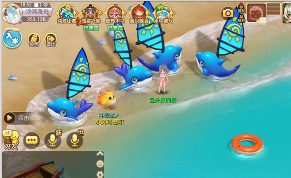 宝宝们可以点击对应的小鸡npc参加冲浪比赛哦,冲浪比赛需要考验宝宝们的反应和观察力。