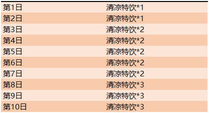 活动内容:只要我们每天登录就可以获得一定数量的清凉特饮。