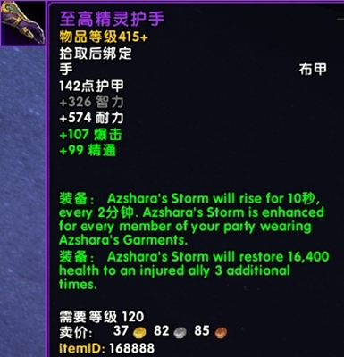 装备:支萨拉风暴会额外为一个受伤的盟友治疗16400生命值3次。