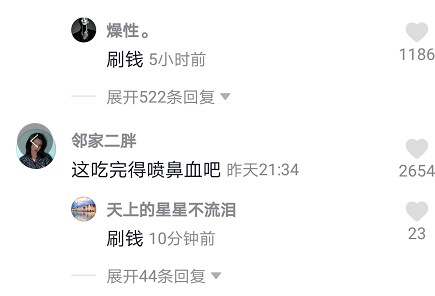 2、第二种意思是用来一条评论赞比较多的时候,表达的是你这么多赞,一定是刷钱刷来的。