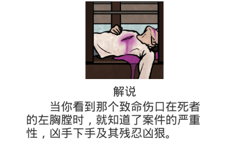 法医检测尸体后, 确定死者是被带有毛刺的利器所伤。听完法医的描述,你注意到现场有个人为的可疑处,那里一定有问题! 请问可疑处是哪?